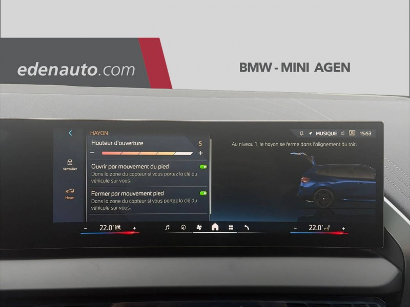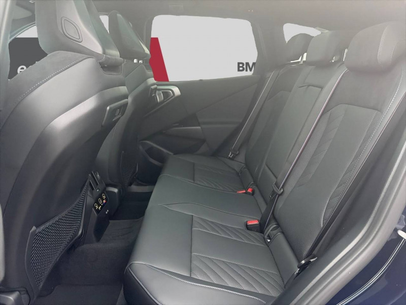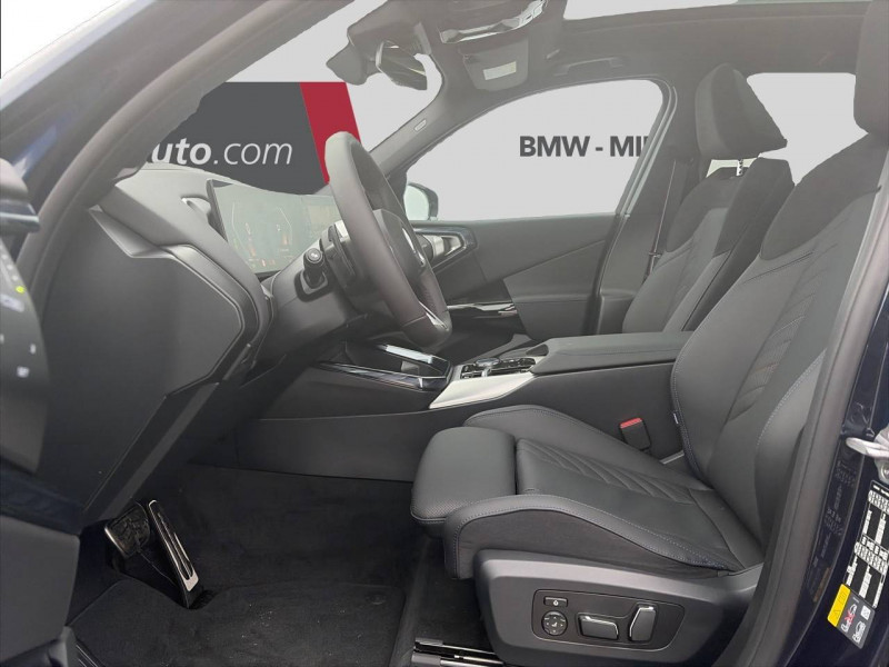 1 clé radiocommandée à mémorisation automatique des réglages "personal profile" 1 setup card & 1 service card / 2 porte-gobelets sur la console centrale / 3ème feu stop led intégré au hayon ar / 5 places / accès confort avec préparation "bmw digital key plus" - ouverture et fermeture (des 4 portes et de la malle) et démarrage sans clé - eclairage d'accueil lorsque le conducteur se situe à 2,5 m du véhicule - déverrouillage automatique à partir de 0,5 m du véhicule - verrouillage automatique lorsque le conducteur s'éloigne du véhicule, à partir de 3 m / accoudoir central av avec panneau de commande intégré / active guard avertissement de franchissement de ligne avec impulsion sur la direction (>70km/h), avertisseur de collision frontale avec intervention de freinage (3-210km/h), avertisseur d'intersection (détection risque collision latérale 3-85km/h), avertisseur présence piéton/cycliste lors d'un virage en intersection (3-35km/h), assistance de limitation de vitesse avec informations de limite de vitesse. / aides à la conduite driving assistant plus - fonction à la demande / aides à la conduite driving assistant regroupe de nombreuses technologies pour une sécurité optimale : avertisseur d'angle mort (>20km/h avec voyant d'alerte et intervention sur la direction), avertisseur de risque de collision ar (déclenchement automatique des warning avec fréquence doublée), avertisseur de sortie (détecte les objets approchant (véhicule, cycliste) et alerte en cas d'ouverture de la portière du conducteur ou des passagers si risque de collision avec l'objet détecté). avertisseur de trafic transversal ar / aides au stationnement parking assistant radars de stationnement av et ar, caméra de recul, manoeuvres de stationnemment en créneau et en bataille facilitées par mesure automatique, fonction de freinage automatique (pdc actif) en marche ar en cas d'obstacle lors d'une manoeuvre de stationnement effectuée manuellement par le conducteur (jusqu'à 5km/h), assistant de marche arrière/auto-reverse. / airbag central (siège conducteur) / airbag entre les deux sièges av en cas de collision latérale / airbags de tête av et aux places latérales ar / alarme antivol surveillance des portes, coffre et capot moteur, protection de l'habitacle, détecteur de soulèvement et sirène. / appel d'urgence intelligent (durée de vie de la voiture) appel automatique vers le centre d'assistance bmw en cas d'accident. touche sos pour appel d'urgence manuel. les données importantes sont automatiquement transmises aux secours : identification et localisation de la voiture, nombre de passagers à bord, statuts des airbags. ce service utilise la carte sim montée d'usine et ne requiert pas l'utilisation du smartphone. / assistance de direction assistée servotronic / bmw digital (bmw maps, rtti sur itinéraire, apple carplay, android auto, bmw intelligent personal assistant) / bmw efficientdynamics direction à assistance électrique servotronic (assistance variable selon la vitesse), fonction d'arrêt et de redémarrage automatique du moteur, système de récupération de l'énergie au freinage. / bmw iconicsounds electric mise en scène du son de conduite électrique à l'intérieur et à l'extérieur du véhicule. sélection du niveau via les modes du commutateur d'expérience de conduite personnalisée: personal : confort acoustique modéré avec faible réponse de charge, sport : nette réponse de charge, efficient : confort acoustique élevé sans mise en scène supplémentaire, expressive : acoustique de conduite d'avant-garde - une réinterprétation artistique du mouvement, relax : paysage sonore vibrant et relaxant. / bmw live cockpit navigation plus avec Écran bmw curved display nouveau système d'exploitation bmw operating system 9 avec widgets variables configurables qui affichent des informations en temps réel, remote software upgrade : mise à jour du logiciel de la bmw à distance, connectivité 4g lte, mise à jour pour les données de carte de navigation over the air (ota), bmw maps : nouveau système de navigation, simplification de la recherche, calcul plus rapide, navigation apprenante. / bmw xdrive transmission intégrale permanente avec répartition variable du couple, inclus fonctionnalité dsc étendue pour la répartition de la motricité. / boîte de vitesses automatique à 8 rapports avec palettes au volant boîte de vitesses automatique à 8 rapports avec sélecteur électronique et palettes au volant. / câble de recharge professionnel mode 3 (t2-t2) pour la recharge publique - 5 mètres câble de recharge professionnel de mode 3 triphasé avec prises type 2 - type 2 destinéà la recharge sur bornes publiques ou privées. peut être utilisé sur une borne de recharge raccordée en courant monophasé ou triphasé avec des puissances de charge maximales : 7,4 kw / 32 a (en monophasé) et de 22 kw / 32 a (en triphasé). rangement dans le coffret à câbles sous le cache du compartiment à bagages. couleur gris basalte. / calandre avec barreaux droits et obliques / capteurs d'impact - activation de l'airbag, des feux de détresse, de l'éclairage intérieur - déverrouillage des portes - activation de la borne batterie de sécurité / carte bmw charging / ceintures de sécurité 3 points à toutes les places / chargeur courant alternatif ac 11 kw / ciel de pavillon m anthracite / clignotants led intégrés aux feux de jour / climatisation automatique 3 zones contrôle individuel de la température pour le conducteur et le passager av, programme automatique avec 5 niveaux d'intensité, fonction sync : les réglages du conducteur s'appliquent à toute la zone passagers, recirculation automatique de l'air (ssc), refroidissement maximal (max ac), pour le conducteur et le passager av, microfiltre à charbon, pré-refroidissement, aérateurs à l'ar dans la console centrale ar. / compartiment à bagages : 2 crochets de sac, filet sur panneau gauche, pris