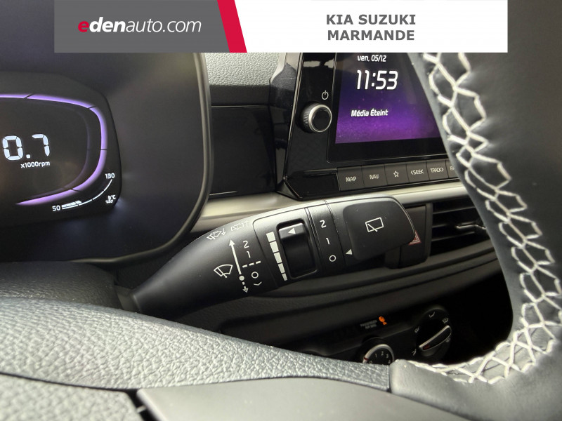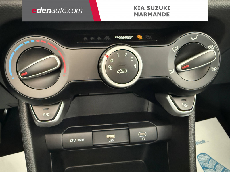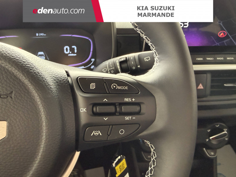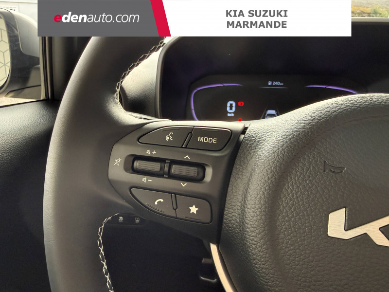 aide au maintien dans la file (lka) / airbags frontaux conducteur et passager (déconnectable passager) / alerte de présence des passagers ar / alerte de vigilance du conducteur (daw) / allumage automatique des projecteurs en fonction de la luminosité / assistance active à la conduite dans les embouteillages (lfa) / boîte de vitesse manuelle 5 / cache-bagages / ceintures de sécurité ar à 3 points (x3) / combiné d'instrumentation digital avec écran « supervision » 4.2'' / compte-tours / configuration 5 places / connectique usb à l'av / console centrale av avec double compartiment de rangement / contrôle de traction (tcs) / direction à assistance électrique (mdps) / eclairage dans le coffre / ecran tactile 8" compatible avec android auto et apple carplay / inserts finition aluminium sur la planche de bord / jantes en acier 14" avec enjoliveurs / kit de dépannage en cas de crevaison / lève-vitres av électriques avec descente/montée à impulsion côté conducteur / pare-soleil avec miroir de courtoisie (conducteur et passager) / plafonnier à l'av / poche aumonière au dos du siège conducteur / poignées de portes extérieures couleur carrosserie / poignées de portes intérieures finition aluminium / pommeau de levier de vitesses gainé cuir / prise 12 v sur la console centrale av / reconnaissance des panneaux de limitation avec régulation de vitesse (isla) / rétroviseurs extérieurs couleur carrosserie / services télématiques kia connect offerts pendant 7 ans / système audio 6 hp dont 2 tweeters av / système de freinage abs avec répartiteur électronique de freinage ebd / système de freinage d'urgence autonome avec détection des voitures, piétons et cyclistes (fca) / système de gestion intelligente des feux de route (hba) / système de navigation avec cartographie europe, services connectés kia connect live et services télématiques kia connect offerts pendant 7 ans / système de téléphonie mains-libres bluetooth avec reconnaissance vocale et streaming audio / système isofix à 3 points d'ancrage sur sièges latéraux ar / volant en matière synthétique