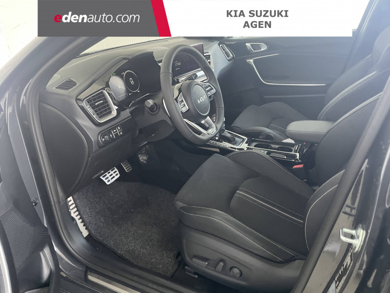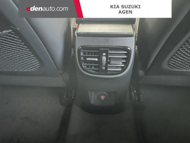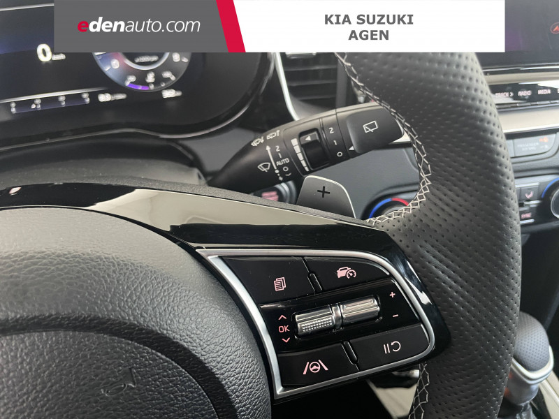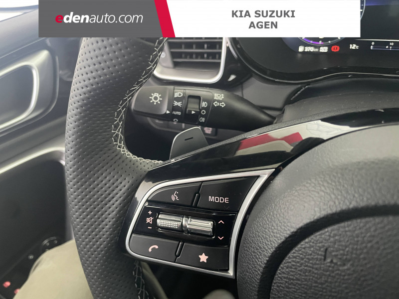 abs avec répartiteur électronique de freinage (ebd) / accoudoir central ar avec porte-gobelets intégrés / accoudoir central av coulissant avec compartiment de rangement / aide au maintien dans la file (lka) / alerte de vigilance du conducteur (daw) / allumage automatique des projecteurs en fonction de la luminosité / appuis-tête av et ar réglables en hauteur et en inclinaison (à l'av uniquement) / assistance active à la conduite dans les embouteillages (lfa) / avertissement de sécurité de sortie du véhicule (sew) / bacs de rangement dans les contre-portes av et ar / becquet ar avec troisième feu stop led intégré / boucliers av/ar / caméra de recul avec lignes de guidage dynamiques, avec fonction switch on/off / combiné d'instrumentation 100 % digital 12.3'' / compartiment range-lunettes / compartiments de rangement sous le plancher de coffre / connectique audio usb / connectique usb à charge rapide à l'ar / connectique usb à charge rapide à l'av / contour de calandre aspect chrome satiné et application noir laqué sur grille de calandre / contrôle de pression des pneumatiques avec indicateur du niveau de pression (tpms high line) / coques de rétroviseurs couleur noir laqué / direction à assistance électrique asservie à la vitesse / eclairage dans le coffre / ecran tactile couleur 10,25'' avec compatibilité via câble usb android auto et apple carplay / extracteurs d'air pour les places ar / hayon ar électrique à ouverture mains-libres / inserts noir laqué au niveau des ouïes d'aération du tableau de bord et de la console centrale / kit de dépannage en cas de crevaison / lève-vitres av et ar électriques, séquentiels et anti-pincement / ligne de vitre chromée / moulures de bas de portes avec insert gris / ouverture et démarrage sans clé "smart key" avec capteur de mouvement / pare-soleil avec miroir de courtoisie illuminé (conducteur et passager) / pédalier et repose-pieds aspect aluminium / poches aumonières au dos des sièges av / poignées de portes intérieures finition chrome satiné / prise 12 v sur la partie inférieure de la planche de bord / prise usb à charge rapide à l'ar / prise usb à charge rapide sur la partie inférieure de la planche de bord / reconnaissance des panneaux de limitation avec régulation de vitesse (isla) / rétroviseur intérieur électrochromatique (ecm) / sellerie mixte suède/cuir noir avec surpiqûres grises / services télématiques kia connect offerts pendant 7 ans / siège conducteur à réglages électrique, 4 axes, avec mémorisation / sièges av à réglage lombaire électrique / spots de lecture av et ar / système actif d'aide au stationnement (pa-prl) / système anti-collision avec détection des angles morts (bca) / système de détection de trafic ar avec fonction freinage (rcca) / système de fixation isofix sur sièges ar latéraux / système de freinage d'urgence autonome avec détection des voitures, piétons et cyclistes (fca) / système de gestion intelligente des feux de route (hba) / système de navigation avec cartographie europe et services connectés kia connect live offerts pendant 7 ans / système de téléphonie mains-libres bluetooth avec reconnaissance vocale, mode personnalisé et fonction streaming audio / témoin de niveau bas du liquide de lave-glace / toit vitré, ouvrant / entrebâillant électriquement, avec rideau occultant électrique et éclairage intérieur à led / verrouillage automatique des portières en roulant / volant à méplat gainé cuir gt-line / volant chauffant / volant et pommeau de levier de vitesses gainés cuir
