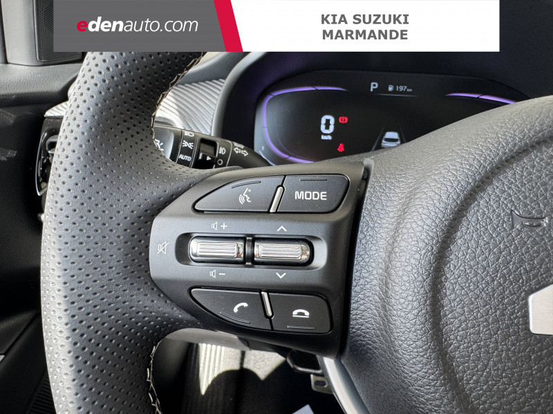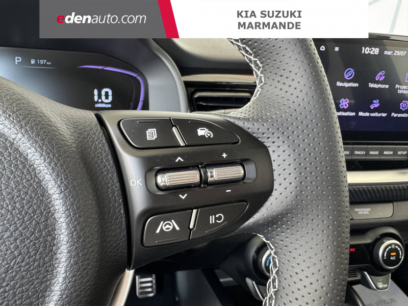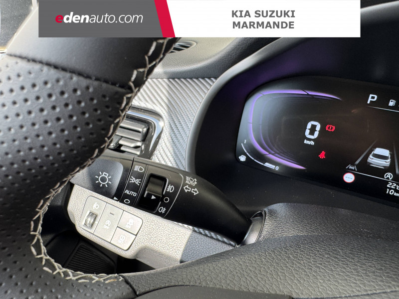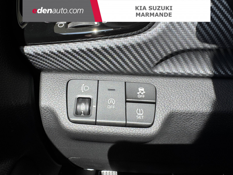 abs avec répartiteur électronique de freinage (ebd) / accoudoir central av avec compartiment de rangement / aide au maintien dans la file (lka) / airbags frontaux conducteur et passager (déconnectable passager) / alerte de vigilance du conducteur (daw) / allumage automatique des projecteurs en fonction de la luminosité / antenne de toit type "aileron de requin" / assistance active à la conduite (lfa) / boucliers av/ar / cache-bagages / calandre avec application noir laqué avec effet "formes de diamants" et contour finition aluminium / caméra de recul avec lignes de guidage dynamiques / ceintures de sécurité ar à 3 points (x3) / combiné d'instrumentation digital avec écran "supervision" 4.2'' / compartiment range-lunettes / connectique usb à l'ar / connectique usb à l'av / console centrale av avec accoudoir central et compartiment de rangement intégré / console centrale av avec double compartiment de rangement / console centrale av avec double porte-gobelets / coques de rétroviseurs extérieurs peintes en noir brillant / diffuseur ar avec double sortie d'échappement esthétique / direction assistée électrique (mdps) / eclairage dans le coffre / gestion intelligente des feux de route (hba) / insert finition carbone sur la planche de bord / inserts aspect satiné au niveau de la console centrale / inserts noir laqué au niveau des ouïes d'aération du tableau de bord / lève-vitres ar électriques verrouillables par le conducteur / lève-vitres av électriques avec descente/montée à impulsion côté conducteur / lève-vitres électriques av séquentiel côté conducteur / ligne de vitres chromée / ouverture et démarrage sans clé "smart key" / pare-soleil avec miroir de courtoisie illuminé (conducteur et passager) / pédalier finition métal / plafonnier à l'av / plancher de coffre à double niveau / poche aumonière au dos du siège passager av / poignées de portes extérieures couleur carrosserie / poignées de portes intérieures finition chrome satiné / pommeau de levier de vitesses gainé cuir / prise 12 v sur la console centrale av / projecteurs av à technologie dite de "projection" avec éclairage statique d'intersection / rails de toit finition aluminium satiné / régulateur de couple et assistance au contre-braquage (vsm) / rétroviseur intérieur avec réglage manuel jour/nuit / rétroviseur intérieur électrochrome / sellerie mixte matière synthétique/tissu noir avec inserts et surpiqûres blanches / services télématiques kia connect offerts pendant 7 ans / surlignage des passages de roues en composite noir / système audio avec écran tactile 8'', 6 haut-parleurs dont 2 tweeters, compatibilité android auto et apple carplay, commandes au volant / système de contrôle vectoriel du couple (tvbb) / système de fixation isofix sur sièges ar latéraux / système de freinage abs avec répartiteur électronique de freinage ebd / système de freinage d'urgence autonome avec détection des voitures, piétons et cyclistes (fca) / système de gestion intelligente des feux de route (hba) / système de navigation avec cartographie europe, services connectés kia connect live et services télématiques kia connect offerts pendant 7 ans / système de téléphonie mains-libres bluetooth avec reconnaissance vocale et streaming audio / système de verrouillage automatique des portes en roulant / volant à méplat gainé de cuir et perforé, badgé gt line / volant chauffant